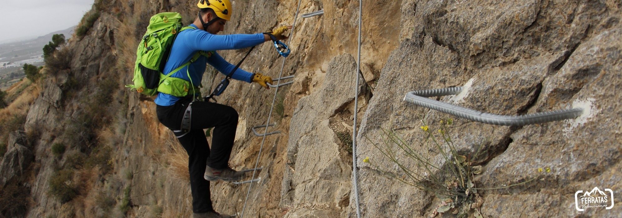 The beginning of the ferrata begins with a small vertical section that in just 10 meters passes a horizontal section, after it again another vertical section that takes us to the first bridge. Then we cross over it and when this ends we have a less vertical section that leads to the 2nd bridge, a Tibetan one. After doing the same there is a section that is not equipped, so we follow a small path over 25 meters, which leads us up to the right handside to the 3rd bridge, made with wooden logs. Now again a small vertical section and then a horizontal one that leads us to a 2nd Tibetan bridge bended outward. So behind it and almost continuous we will find a steel beam. There is a small esplanade and we reach the most difficult part of the ferrata within a vertical and outbound rock section. After overcoming it we continue on another vertical section until we reach a small esplanade, then we see a bridge with a wooden beam and after passing it a last vertical section will takes us to the end of this section. A little further up we find the crossroads wich one end takes us back to the parking lot (right handside) and another one on the left handside leads us to the sports track ferrata.