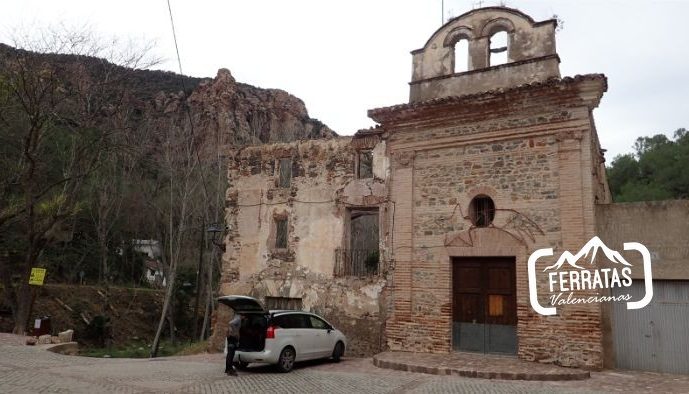 Hay que ir a la población de Benitandus y nada más cruzar el puente de acceso a la población, aparcar en la misma plaza, donde se encuentra una ermita con un antiguo campanario y ruinas al lado.