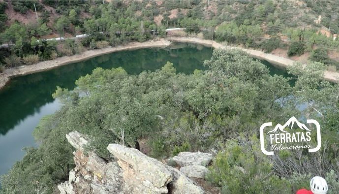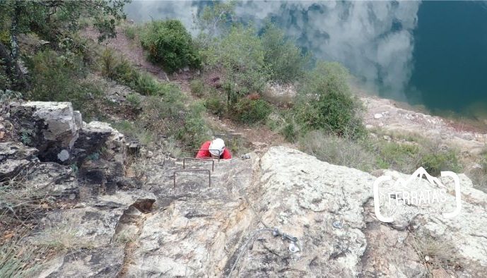 Ferrata con un entorno muy bonito y con progresión combinada de peldaños y roca.