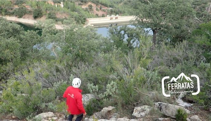 Lo ideal es volver sin hacer el rápel. Desde el final de la ferrata, tomamos como referencia, la presa del embalse y tenemos que bajar siguiendo la cresta por la que hemos subido en dirección a la presa del embalse, la senda está bastante marcada y no tienen perdida. Esta nos conduce hasta pie del embalse, tomamos a la derecha y enseguida llegamos al inicio de la ferrata, ahora solo nos queda desandar el camino de ida.