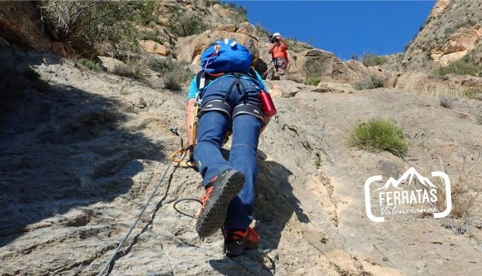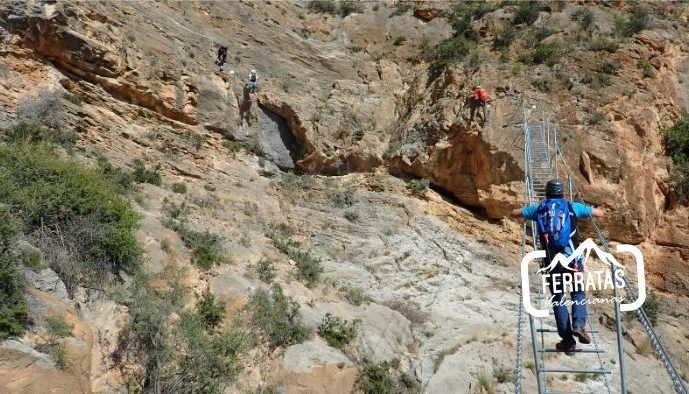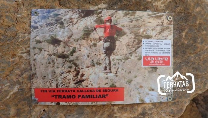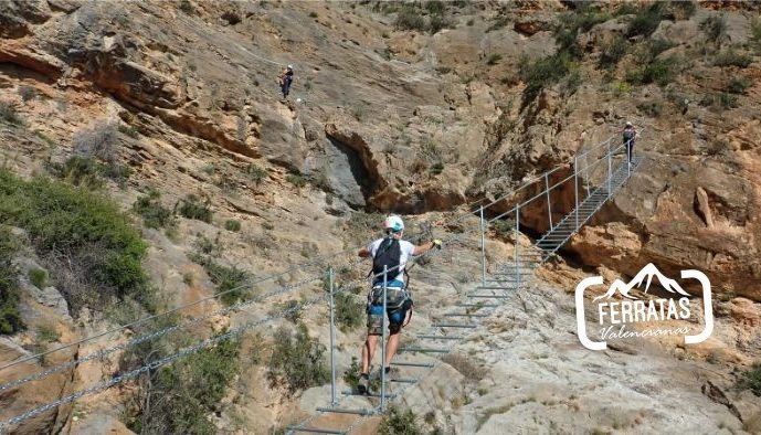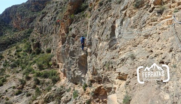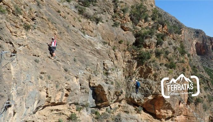 Este tramo de ferrata es ya por si solo, una ferrata normal en cualquier otra parte de la comunidad Valenciana, muy fácil en todo el recorrido excepto en un tramo horizontal algo extraplomado, veremos diferentes puentes colgantes y como novedad un puente en subida y con peldaños de barra de acero, un tramo muy divertido y conseguido.