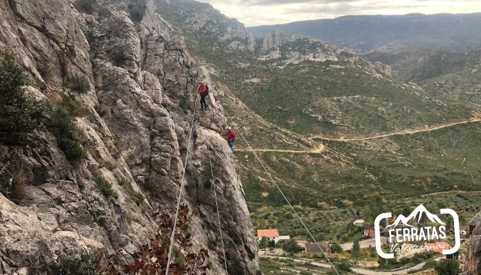Ferrata que junto con la actividad barranquismo se complementa perfectamente. Se realiza todo en una zona muy interesante con gran ambiente de montaña y con formaciones geológicas extraordinarias. Atención con la instalación.