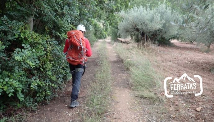 Tenemos que tomar como referencia la zona rocosa sin apenas árboles que tenemos enfrente de la fuente, en esa roca esta la ferrata. Desde el parking, cogemos la pista de tierra que esta a escasos 15 metros de la fuente, nos adentramos por la misma entre bancales, llegaremos al lecho del río y continuamos por la pista hasta que la misma nos acerca a escasos 300 metros de la montaña, tenemos que continuar en línea recta entre los bancales hasta el pie de la montaña, veremos que sale una senda ascendente que con varios zigzags nos deja a pie de la ferrata.